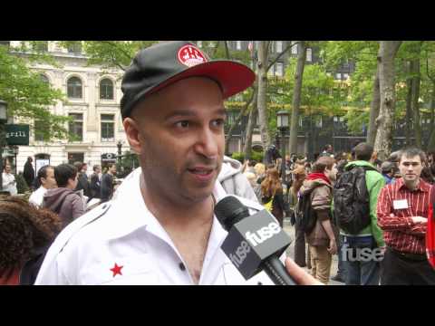 Grammy Award-winning guitarist Tom Morello made a special appearance at the May Day Occupy Wall Street in New York City's Bryant Park. Singing along with a large crowd of protestors, Morello performed an acoustic version of Woody Guthrie's "This Land is Your Land." MORE HERE