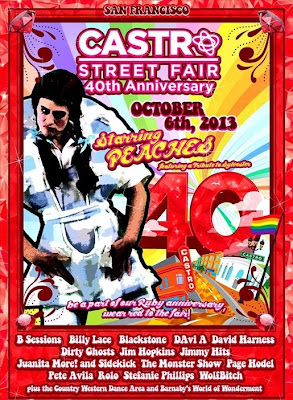 Peaches — along with her Peachettes — headlined the Main Stage. Her performance included a never-before-seen tribute to disco legend Sylvester, who performed at the second annual Castro Street Fair in 1975. source